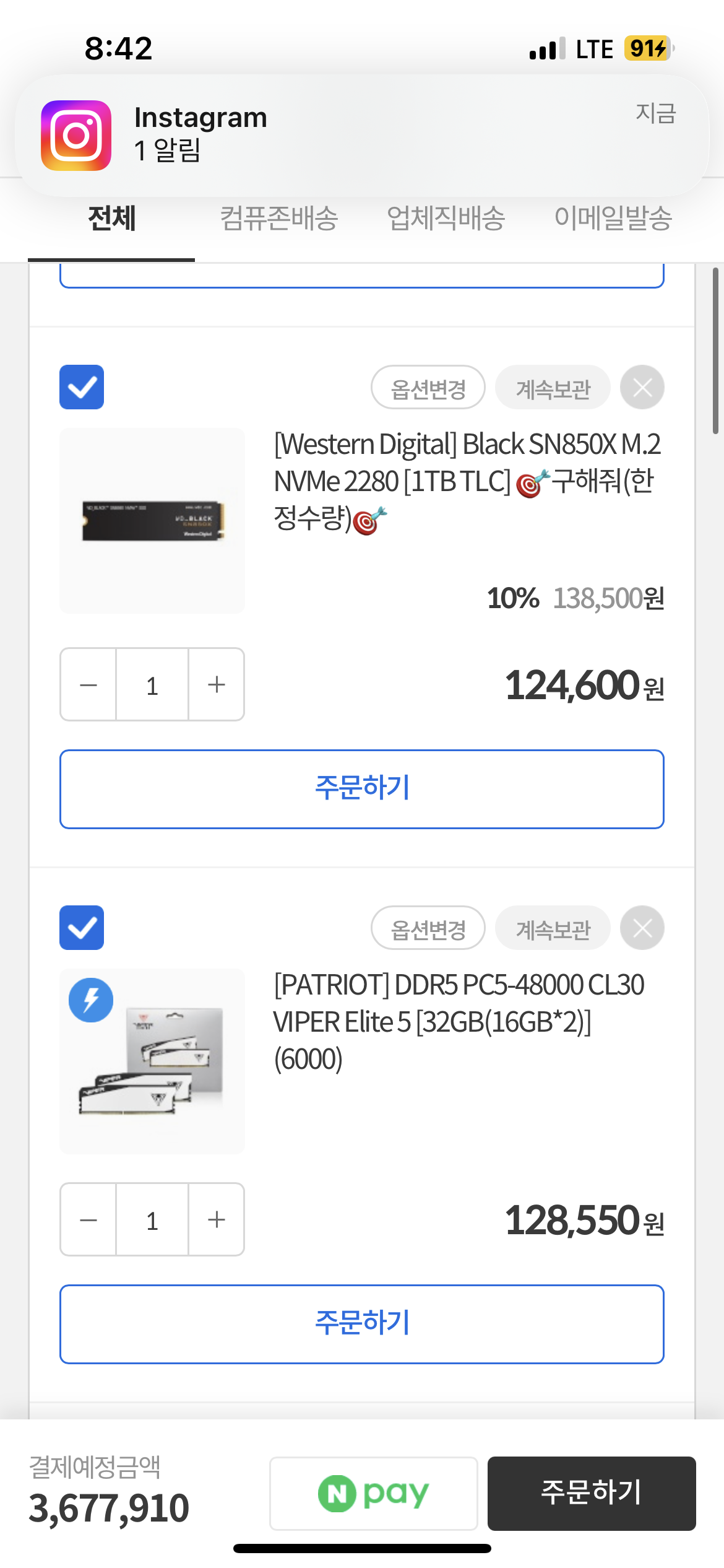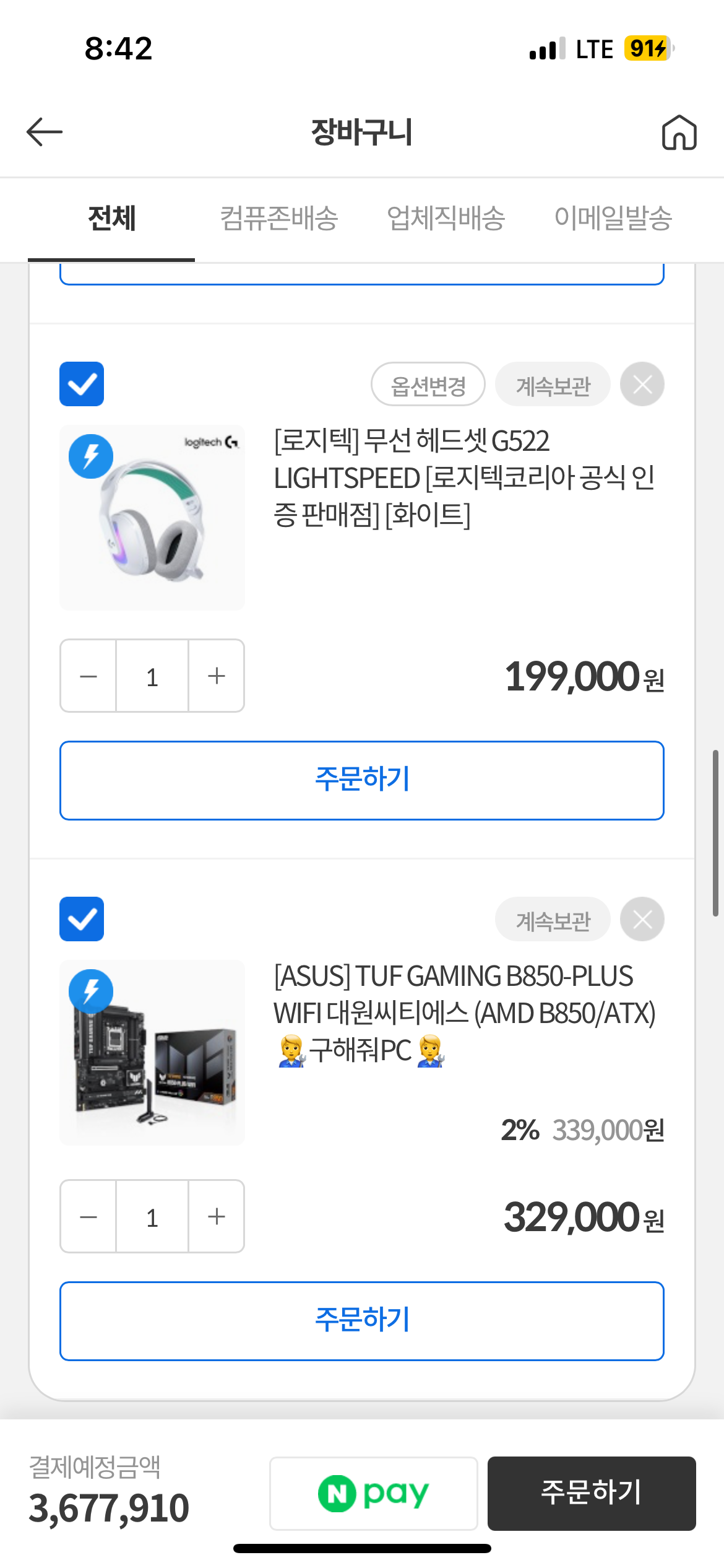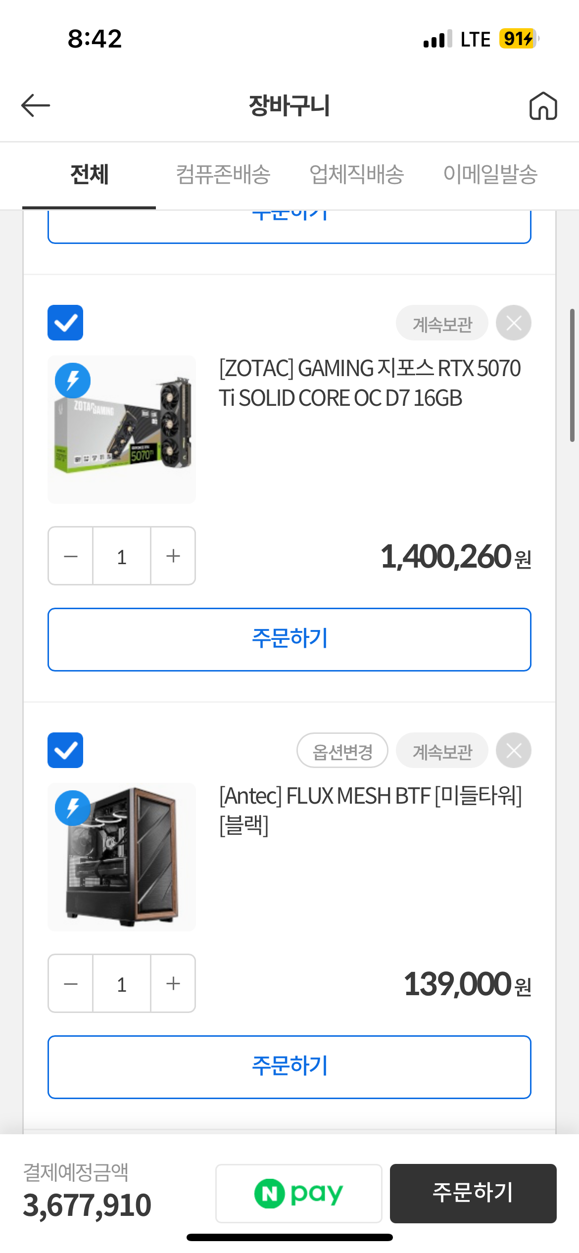 그 외 SSD, CPU쿨러는 CPU와 메인보드에 호환 가능한 제품이지만