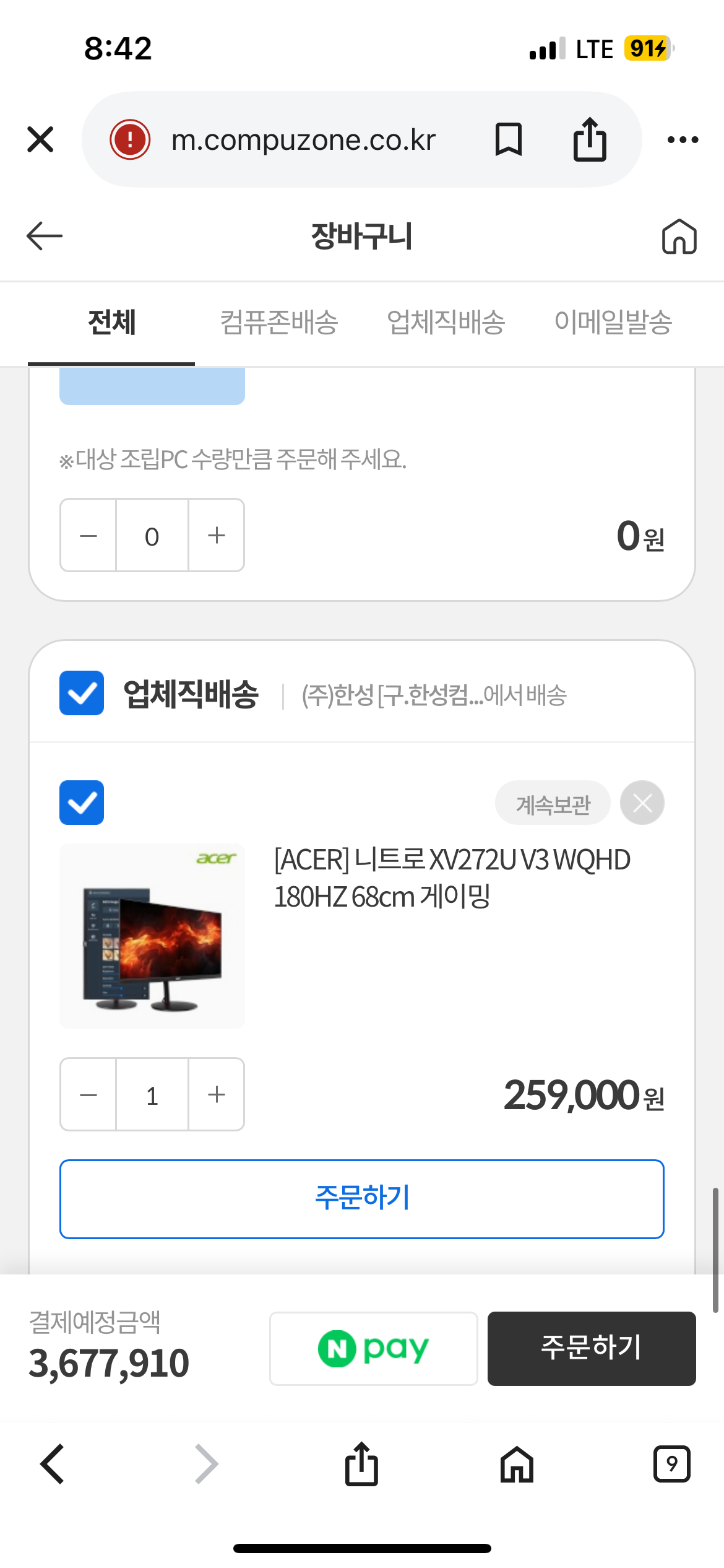 모니터는 현재 품절 상품이기에 제외하고 견적에 구성하였습니다.
