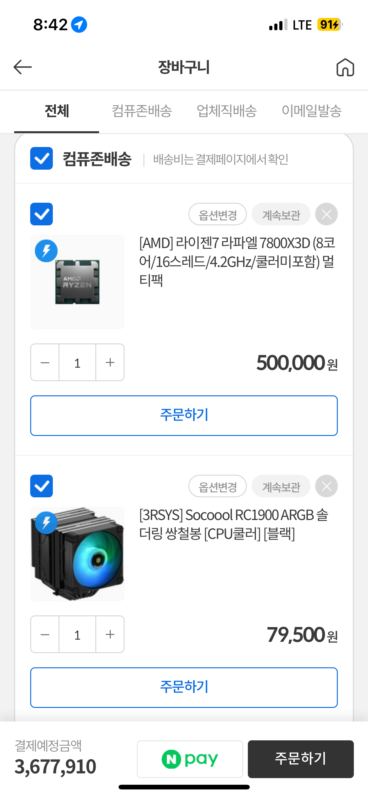 그 외 SSD, CPU쿨러는 CPU와 메인보드에 호환 가능한 제품이지만