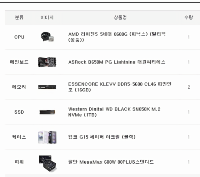 올려주신 이미지를 참고하여 견적 구성하였습니다.