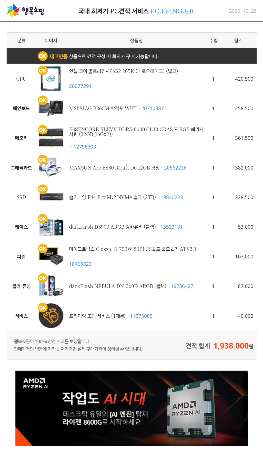 안녕하세요, 행복쇼핑 PC 견적 매니저 John 입니다.