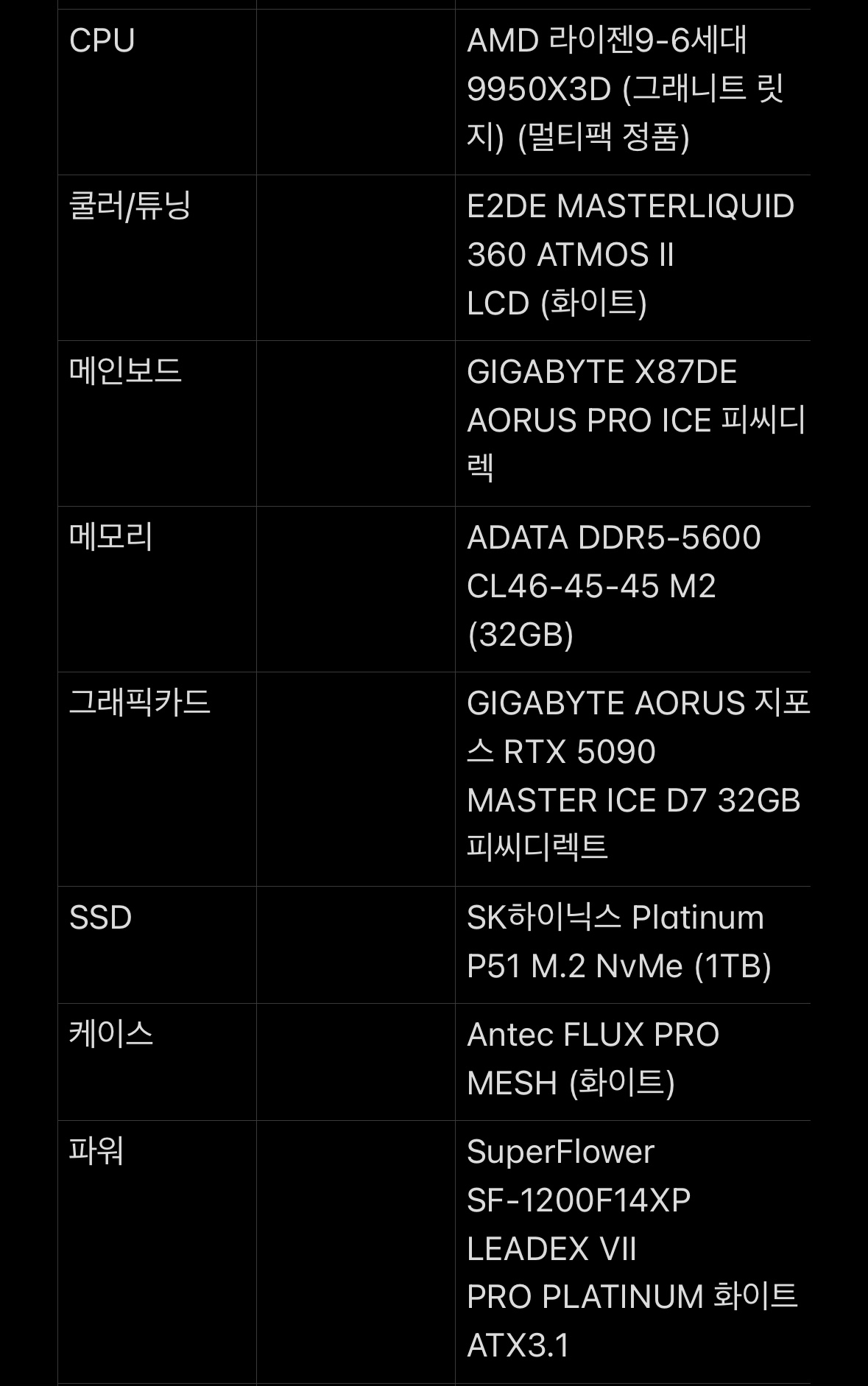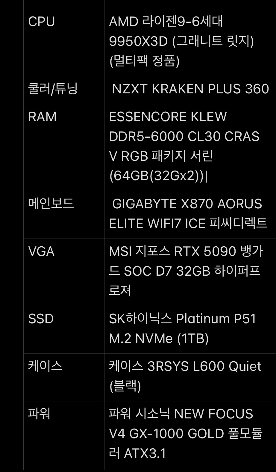 또한 그래픽카드 RTX 5090 의 요구 사양은 파워 1000W 이상이며