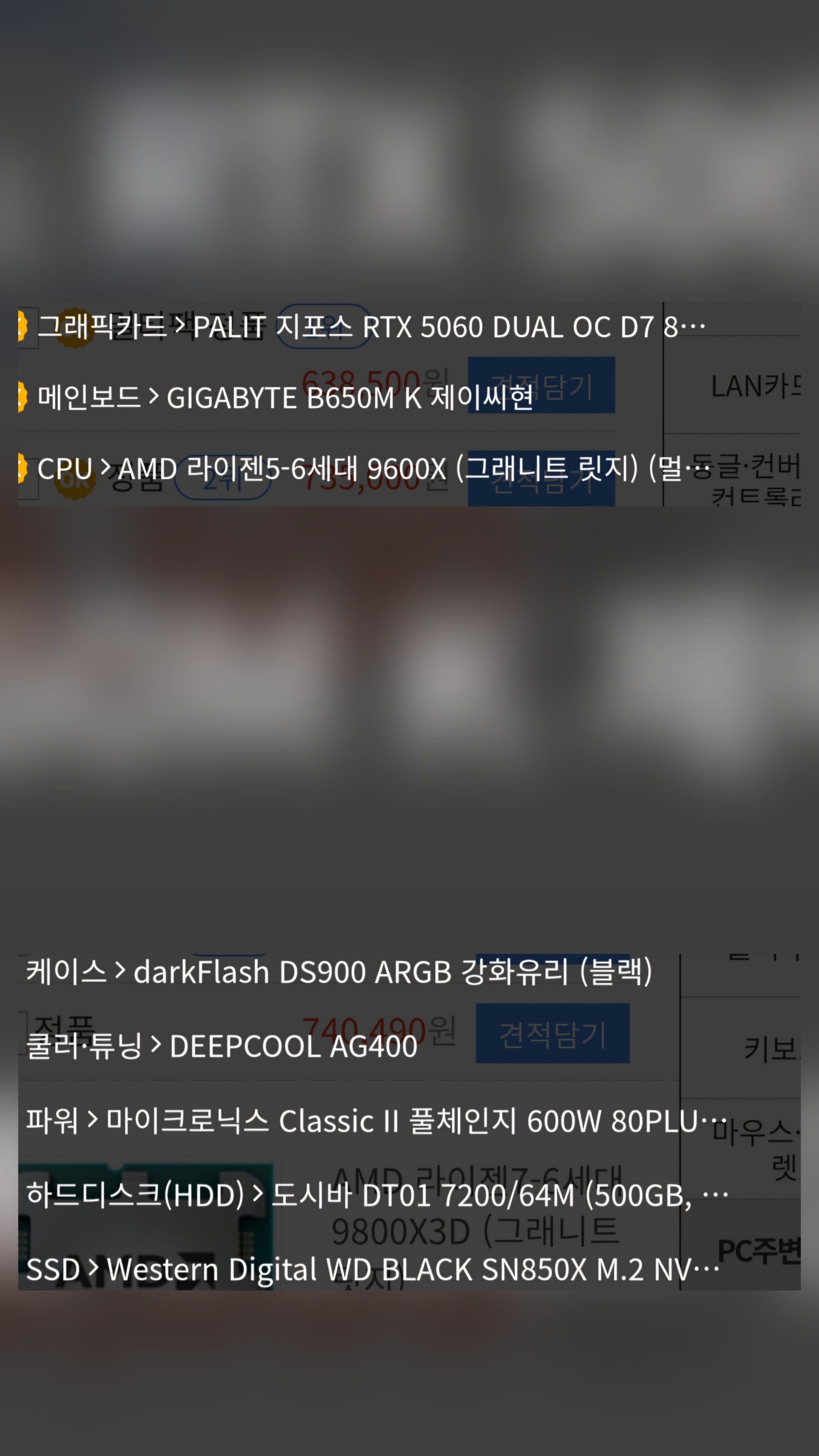 그 외 메모리, SSD, HDD, CPU쿨러는 CPU와 메인보드, 케이스 등에 호환 가능한 제품입니다.
