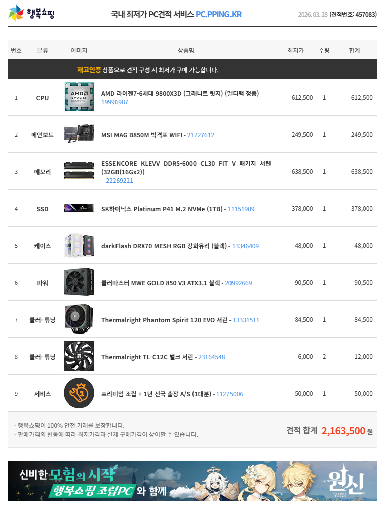 국내 최저가 PC견적 서비스